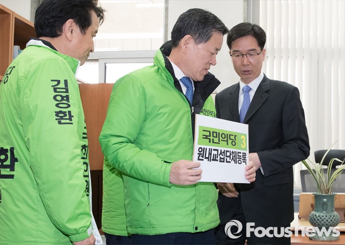 (서울=포커스뉴스) 18일 오전 서울 여의도 국회에서 국민의당 김영환인재영입위원장, 주승용 원내대표가 국회의사국 관계자에게 원내교섭단체등록서를 제출하기 위해 이동하고 있다.