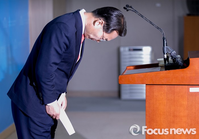 (서울=포커스뉴스) 공천 탈락한 조해진 새누리당 의원이 18일 오전 서울 여의도 국회 정론관에서 탈당 및 20대 총선 무소속 출마 기자회견을 마친 뒤 인사하고 있다.
