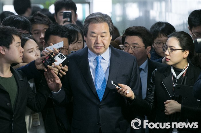 (서울=포커스뉴스) 김무성 새누리당 대표가 18일 오전 서울 여의도 국회에서 열린 비공개 최고위원회의를 마친 뒤, 기자들의 질문을 들으며 밖으로 나가고 있다.