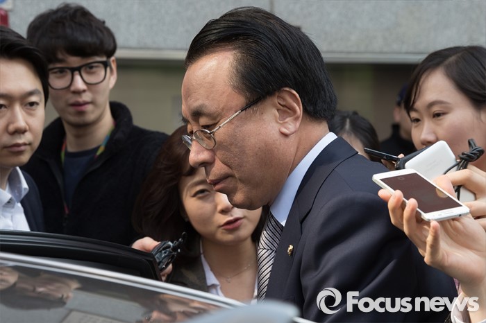 (서울=포커스뉴스) 새누리당 공천관리위원회 전체회의가 전격 취소된 18일 오후 서울 영등포구 당사를 김회선 새누리당 공천관리위원이 나서고 있다.