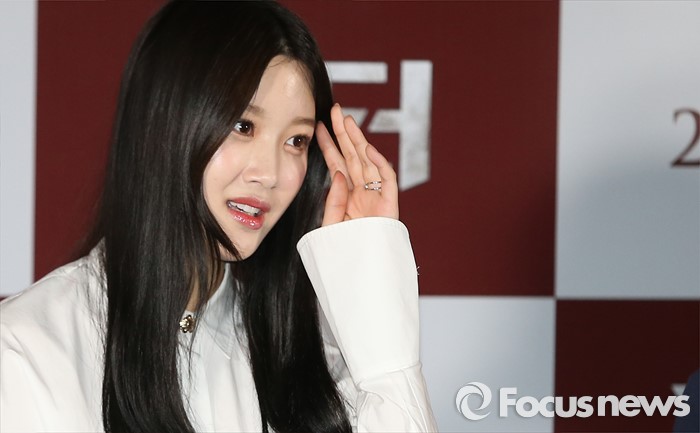 (서울=포커스뉴스) 18일 오후 서울 성동구 왕십리CGV에서 열린 영화 '커터' 언론시사회에 참석한 배우 문가영이 머리카락을 정돈하고 있다.