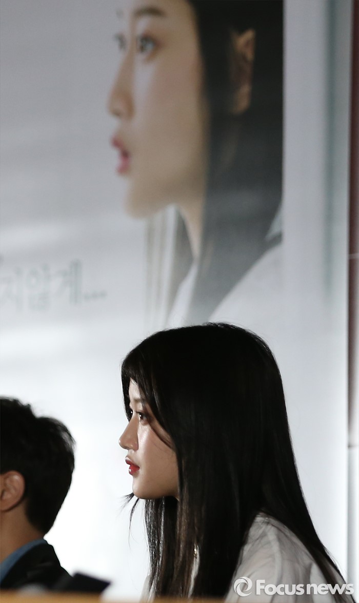 (서울=포커스뉴스) 18일 오후 서울 성동구 왕십리CGV에서 열린 영화 '커터' 언론시사회에 참석한 배우 문가영이 취재진에게 질문을 받고 있다.