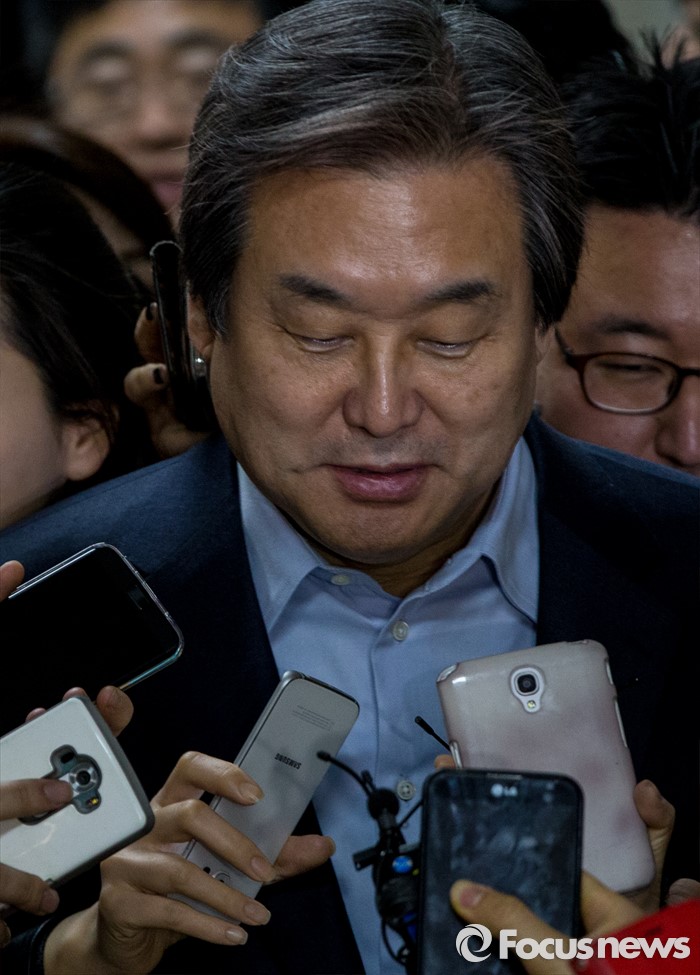 △ 취재진 질문 답하는 김무성