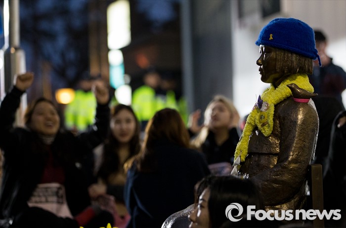 소녀상 지킴이 대학생 농성단은 18일 오후 8시 30분 서울 종로구 구 일본대사관 앞에서 '한일 위안부 합의 폐기 및 소녀상 이전 반대' 농성을 선포했다.