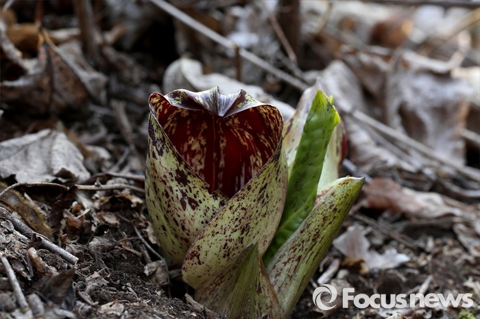(하남=포커스뉴스)봄 기운이 완연한 19일 오전 경기도 하남시 검단산자락에 앉은부채들이 겨우내 얼었던 대지를 뚫고 돋아나고 있다. <사진제공=이준택교수>