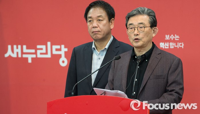 (서울=포커스뉴스) 이한구 공천관리위원장이 박종희 공관위원과 함께 19일 오후 서울 영등포구 새누리당사에서 총선 공천을 위한 여론조사 경선 결과를 발표하고 있다.