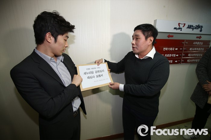 (서울=포커스뉴스) 19일 오후 서울 영등포구 새누리당사에서 이재오 의원 측 보좌관이 공천심사 재심사 요청서를 제출하기 위해 방문, 당직자에게 전달하고 있다.