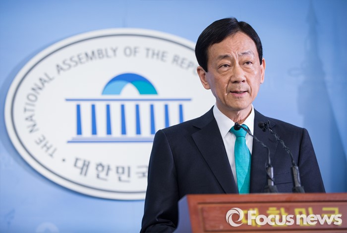 | △ 탈당 기자회견 갖는 진영 |