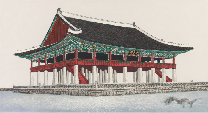접수된 작품은 오는 7월 말 심사를 거쳐 광복절인 8월15일 김기철 화백 홈페이지 등을 통해 총 10명을 발표할 예정이다. 시상자는 김 화백의 우리궁궐 판화 작품, 사인된 '우리궁궐' 도록, 김기철 화백의 웹사이트 메인 화면에 전시 및 특전을 통한 기획 전시 기회 등이 주어진다.김기철 화백의 '경복궁 경회루(40x73cm)' 작품.<사진제공=김기철화백사무국>