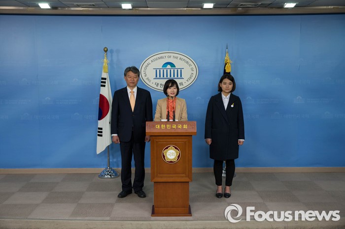 (서울=포커스뉴스)김재연(가운데) 전 통합진보당 의원이 20일 오후 서울 여의도 국회에서 기자회견을 열고 민주연합당 입당을 발표하고 있다.