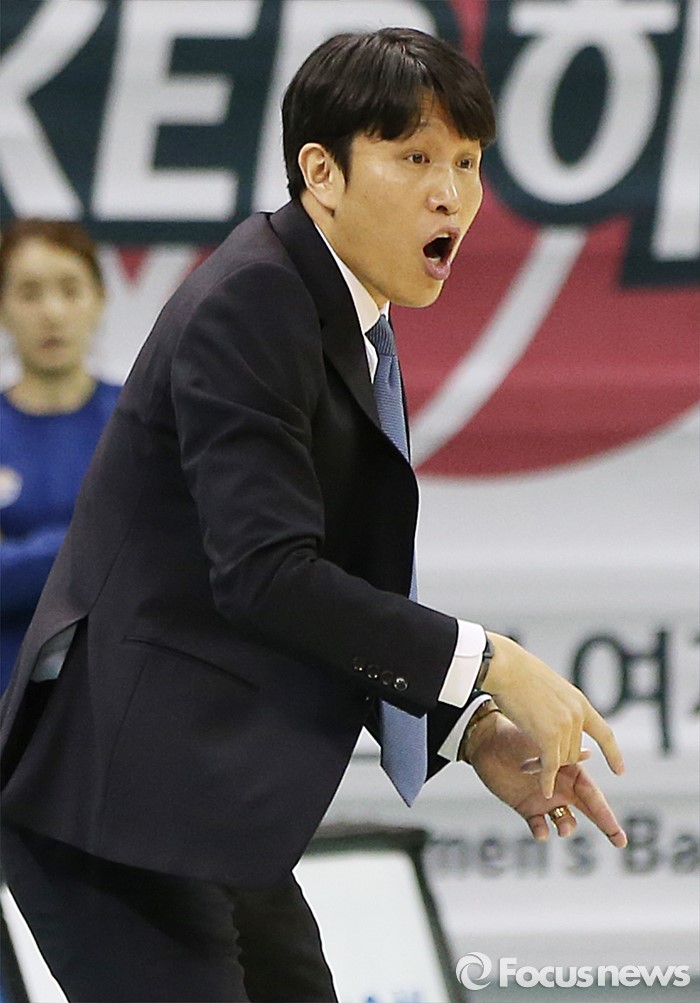 (부천=포커스뉴스) 20일 부천체육관에서 열린 2015-2016 여자프로농구 챔피언결전전 3차전 KEB하나은행-우리은행 경기에서 우리은행 위성우 감독이 선수들을 독려하고 있다.