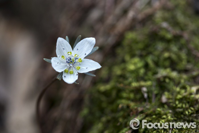 (군포=포커스뉴스) 봄의 전령 변산바람꽃이 20일 오후 경기도 군포시 수리산계곡에 살포시 드러나고 있다.<사진제공=조용철사진가>