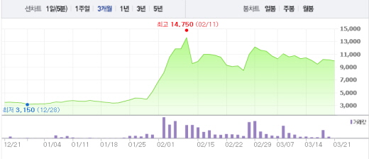 이에 반해 오리엔트 바이오는 3일 연속 소폭 상승세로 주목을 받고 있다. 뇌염백신과 인플루엔자 백신의 생산원료를 공급하는 오리엔트 바이오는 0.67%(10원) 오른 1505원에 거래되고 있다.