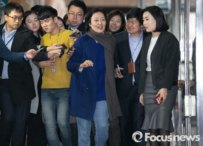 | △ 질문 받으며 출근하는 박영선 |