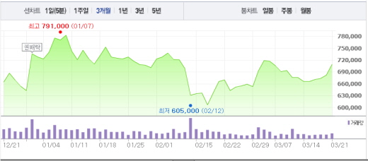 이날 한 매체에 따르면 한미약품은 유럽에서 성장호르몬 결핍증이 있는 사람을 대상으로 치료제의 효능과 안전성을 평가한 것으로 알려졌다.주가흐름<사진출처=네이버 캡쳐>
