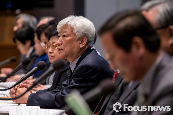 (서울=포커스뉴스) 김영주 한반도평회회의 의장이 21일 오전 서울 중구 프레스센터 국제회의장에서 열린 '제1차 한반도평화회의'에 참석해 모두발언 하고 있다.