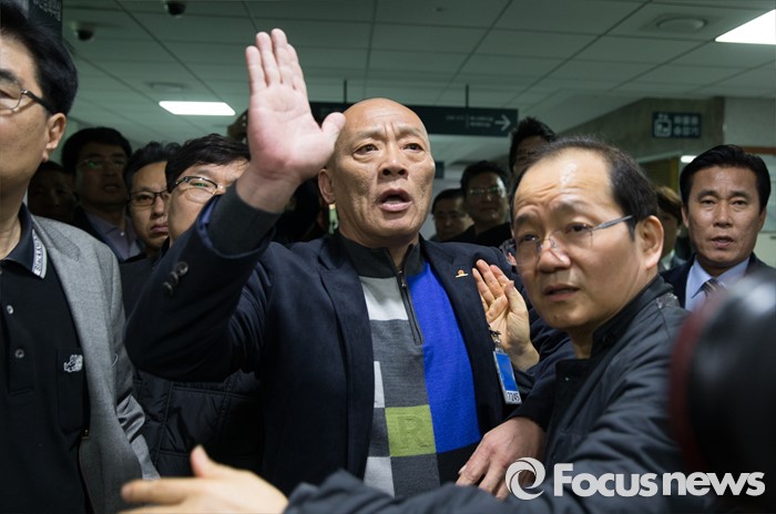 (서울=포커스뉴스) 21일 오전 서울 여의도 국회 의원회관에서 열린 국민의당 최고위원회의 회의장 앞에서 당원들이 호남 지역구 공천 결과에 대해 항의하고 있다.