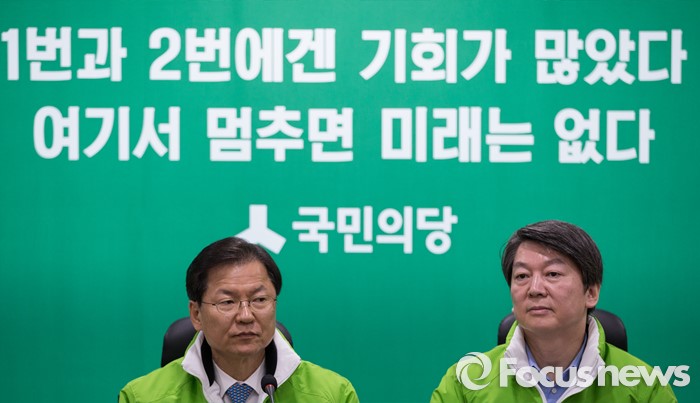 (서울=포커스뉴스) 안철수(오른쪽), 천정배 국민의당 상임공동대표가 21일 오전 서울 여의도 국회 의원회관에서 열린 최고위원회의에 참석하고 있다.