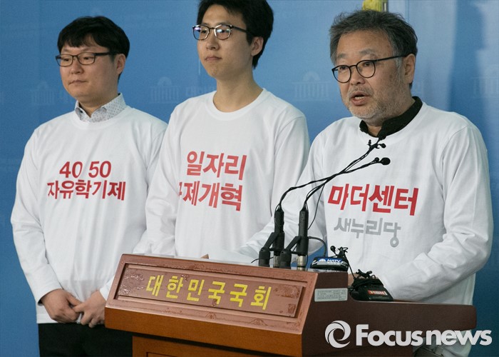 (서울=포커스뉴스) 조동원(오른쪽) 새누리당 홍보기획본부장이 21일 오전 서울 여의도 국회 정론관에서 20대 총선 슬로건 및 홍보전략 발표 등 기자회견을 하고 있다.