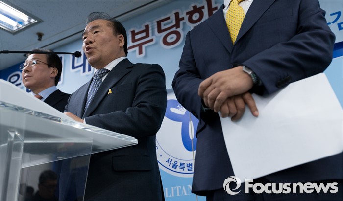 (서울=포커스뉴스) 21일 오후 서울특별시교육청에서 장휘국 전국시도교육감협의회 회장이 교육감 탄압 중단 성명서를 발표하고 있다.