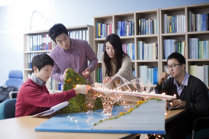 경희대는 이러한 '대학혁신'을 향한 '담대한 도전'의 결과가 지역사회와 국가 등 분야에 확산될 것으로 기대하고 있다.공과대학 사회기반시스템공학과 종합설계교과목(캡스톤 디자인)에서의 모형교량 설계 및 제작 모습. <사진제공=서울 경희대학교>