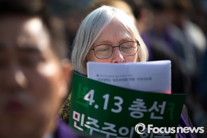 (서울=포커스뉴스) 21일 오후 서울 중구 덕수궁 대한문 앞에서 한국기독교 장로회 총회 '고난당하는 민주주의를 위한 시국기도회'가 열리고 있다.