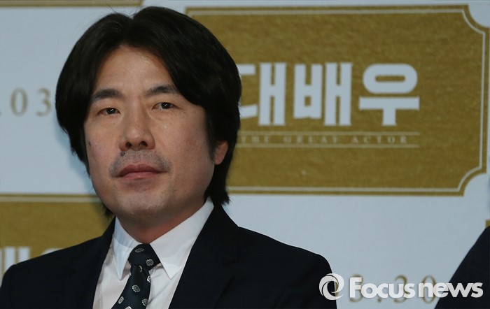 (서울=포커스뉴스) 21일 오후 서울 광진구 건대입구 롯데시네마에서 열련 영화 '대배우' 언론시사회에 참석한 배우 오달수가 취재진에게 질문을 받고 있다.