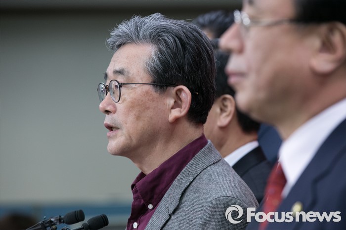(서울=포커스뉴스) 이한구 새누리당 공천관리위원장과 위원들이 21일 오후 서울 여의도 당사에서 20대 총선 여론조사 경선 결과 발표를 하고 있다.
