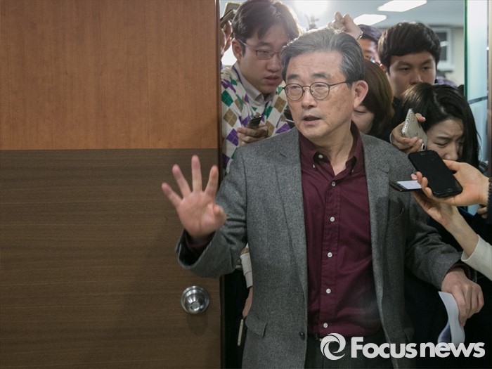 (서울=포커스뉴스) 이한구 새누리당 공천관리위원장과 위원들이 21일 오후 서울 여의도 당사에서 20대 총선 여론조사 경선 결과 발표를 마친 뒤 퇴장하고 있다.