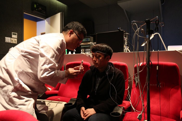 현재 스크린X는 국내와 중국, 미국, 태국 등 전세계 80개 극장, 91개 상영관에서 운영 중이며, 향후 2020년까지 전세계 1000개 스크린까지 확대 설치한다는 목표다카이스트 경영대학 박병호 교수가 스크린X의 몰입감을 뇌과학으로 입증하기 위한 실험을 진행하고 있다.<사진제공=CGV>
