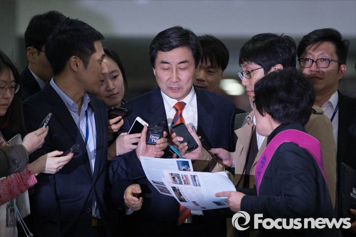 | △ 취재진에 둘러싸인 이종걸 원내대표 |