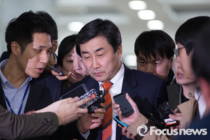 (서울=포커스뉴스) 비례대표 선정을놓고 김종인 비대위 대표가 당무를 거부하는 등 더불어민주당의 진통이 계속되고 있는 21일 오후 이종걸 더민주 원내대표가 서울 여의도 국회 의원회관에서 열린 중앙위원회 행사장으로 들어서고 있다.