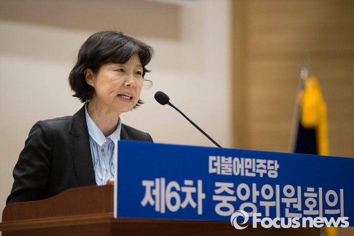 (서울=포커스뉴스) 비례대표 선정을놓고 김종인 비대위 대표가 당무를 거부하는 등 더불어민주당의 내홍이 계속되고 있는 가운데 22일 오전 서울 여의도 국회 의원회관에서 진행 중인 중앙위원회의에서 양정숙 변호사가 비례대표국회의원 후보자 정견발표를 하고 있다.