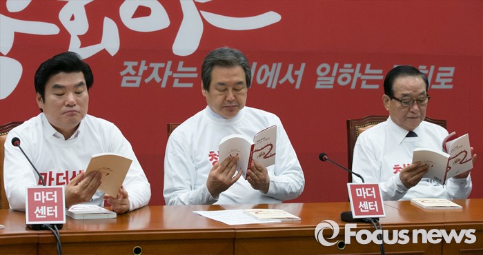 앞서 19일 밤 최고위에서 이 문제가 논의됐지만 뚜럿한 결론에는 도달하지 못했다. 당시 추인 여부를 놓고 최고위원들 간에 이견이 발생하자 일부 최고위원들이 강하게 표결을 요구한 것으로 알려졌다. 그러나 김 대표는 공관위의 결정 자체가 당헌·당규에 위배된다며 이를 받아들이지 않았다.김무성(가운데) 새누리당 대표와 원유철(왼쪽) 원내대표, 서청원 최고위원이 21일 오전 서울 여의도 국회에서 열린 최고위원회의에 참석해, 20대 총선 정책공약집을 보고있다. 2016.03.21 박철중 기자