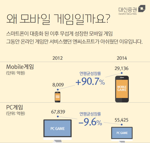 카드뉴스는 대신증권 홈페이지와 블로그, HTS 등을 통해 확인할 수 있다.카드뉴스 형태의 엔씨소프트 보고서<사진출처=대신증권 보고서 캡쳐>