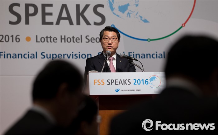 (서울=포커스뉴스) 22일 오전 서울 중구 소공로 롯데호텔에서 진웅섭 금융감독원장이 외국계금융회사 대상 업무설명회 'FSS SPEAKS 2016'에 참석해 기조연설을 하고 있다.