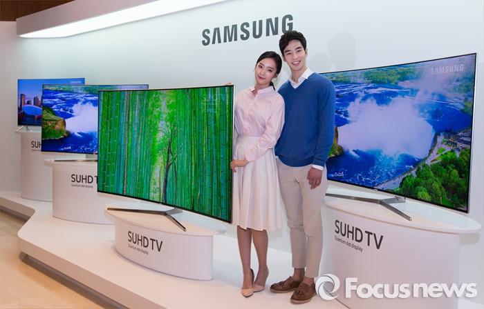 (서울=포커스뉴스) 22일 오전 서울 강남구 삼성전자 서초사옥에서 모델들이 '퀀텀닷 디스플레이 SUHD TV' 제품을 선보이고 있다.