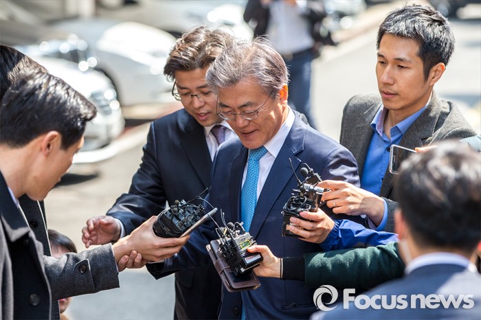 (서울=포커스뉴스) 문재인 전 더불어민주당 대표가 김종인 비상대책위 대표와 면담하기 위해 22일 오후 서울 종로구 김 대표 자택으로 이동하며 취재진 질문을 받고 있다.