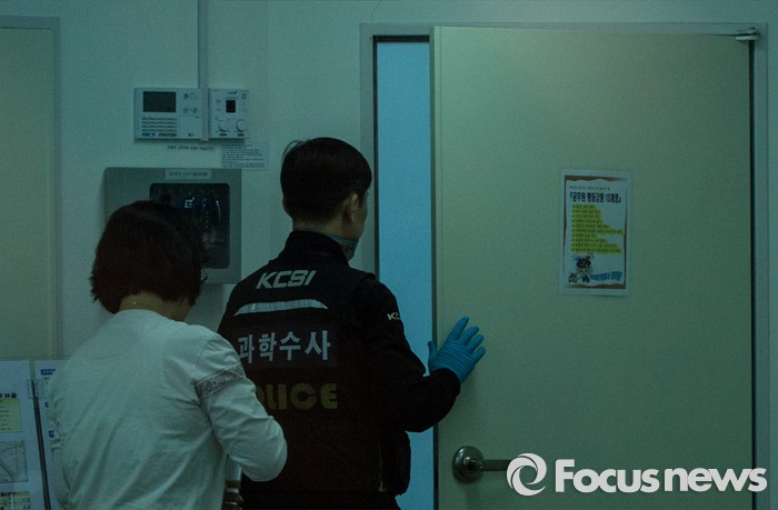 △ 경찰 권총 자살, 분주한 과학수사요원
