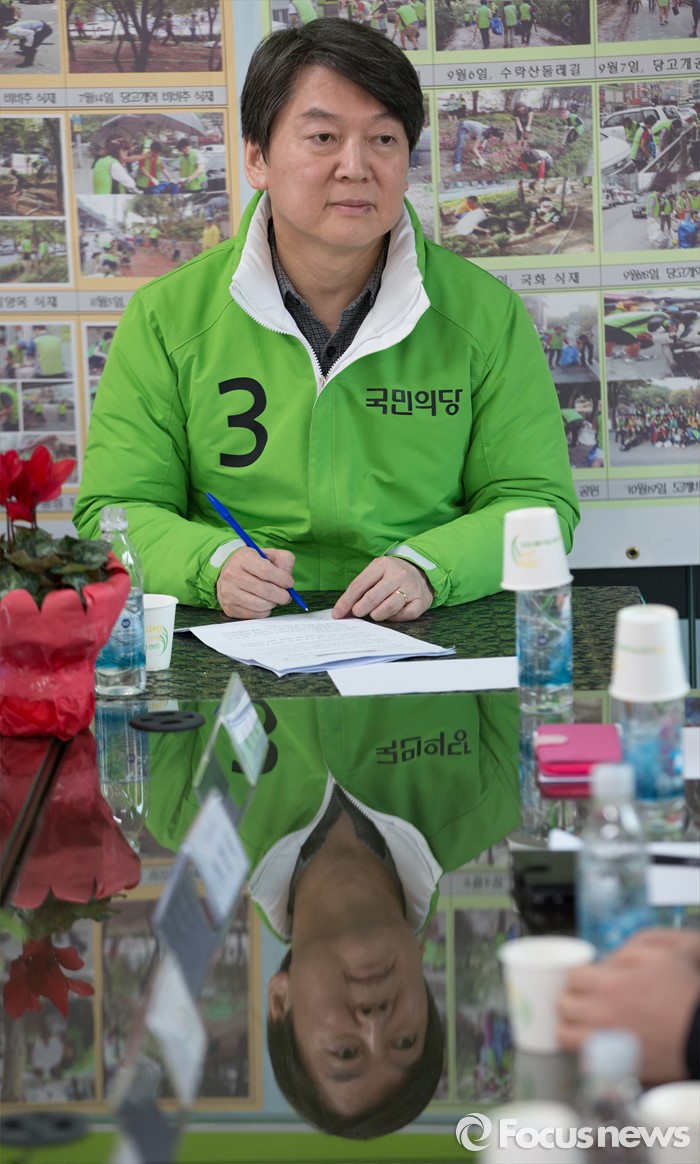 (서울=포커스뉴스) 안철수 국민의당 상임공동대표가 22일 오후 서울 노원구 상계동 김광수 서울시의원 사무실에서 지역상공인들과 대화의 시간을 갖고 있다.