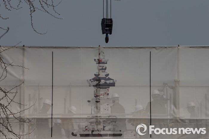 (서울=포커스뉴스) 22일 오후 서울 경복궁 국립고궁박물관 앞뜰에서 국보 제101호 법천사지 지광국사탑이 해체되고 있다.