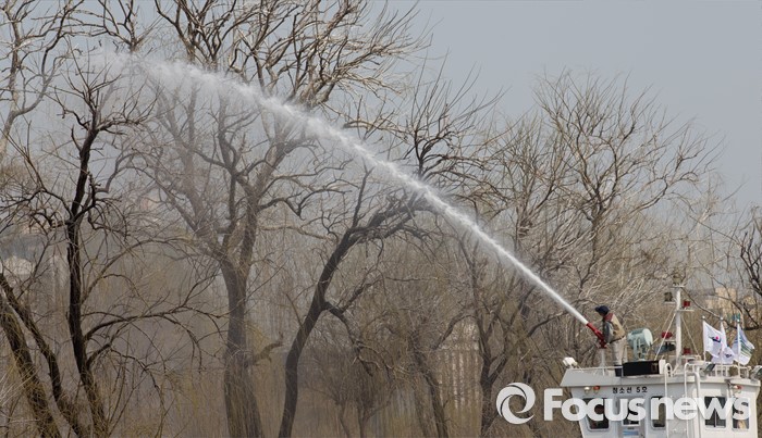(서울=포커스뉴스) 22일 오후 서울 영등포구 밤섬에서 한강사업본부 관계자들이 조류 산란기 전 버드나무에 쌓인 민물가마우지의 배설물 등을 청소하고 있다.