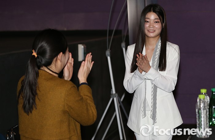 (서울=포커스뉴스) 22일 오후 서울 성동구 왕십리 CGV에서 열린 영화 '스틸 플라워' 언론시사회에 참석한배우 정하담이 포토타임을 마친 후 퇴장하고 있다.
