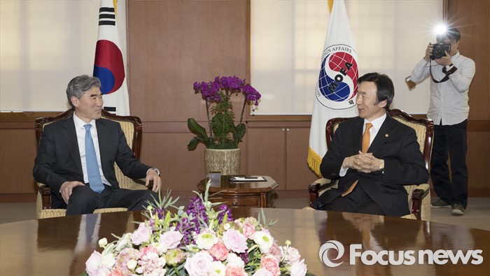 (서울=포커스뉴스)성김(왼쪽) 미 국무부 대북정책특별대표와 윤병세 외교부 장관이 22일 오후 서울 종로구 외교부에서 만나 대화를 나누고 있다.