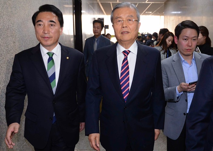 (서울=포커스뉴스) 20대 총선 비례대표 후보자 순번 등 논란으로 당무를 거부했던 김종인 더불어민주당 비대위 대표가 22일 오후 서울 여의도 국회에서 비공개 회의를 마친 뒤 이동하고 있다. 왼쪽은 박수현 비서실장.