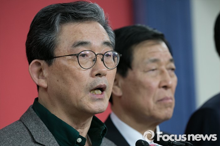 (서울=포커스뉴스) 이한구(왼쪽) 새누리당 공천관리위원장이 22일 오후 서울 여의도 당사 기자실에서 4.13 총선 비례대표 후보자 발표를 하고 있다.