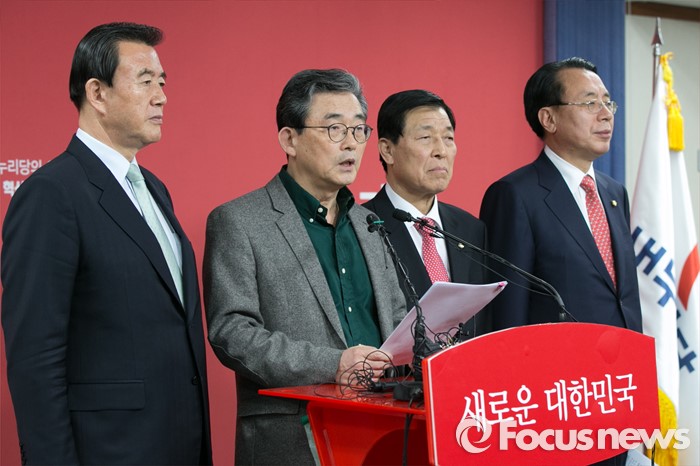 (서울=포커스뉴스) 이한구(왼쪽 두번째) 새누리당 공천관리위원장이 22일 오후 서울 여의도 당사 기자실에서 4.13 총선 비례대표 후보자 발표를 하고 있다.