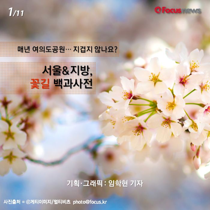 (서울=포커스뉴스) 남쪽에서부터 피기 시작한 봄꽃이 조금씩 북쪽으로 올라오고 있습니다. 봄꽃 구경 어디로 갈 생각이신가요? 아직 정하지 못하셨다면 아래 카드뉴스로 정해보시는 것도 좋을 것 같습니다.