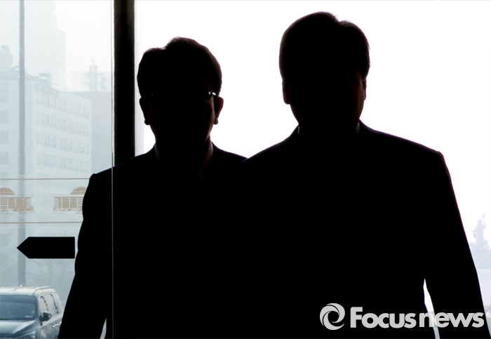(서울=포커스뉴스) 김무성(오른쪽) 새누리당 대표와 권성동 전략기획본부장이 23일 오전 서울 여의도 국회에서 열리는 최고위원회의에 참석하고 있다.