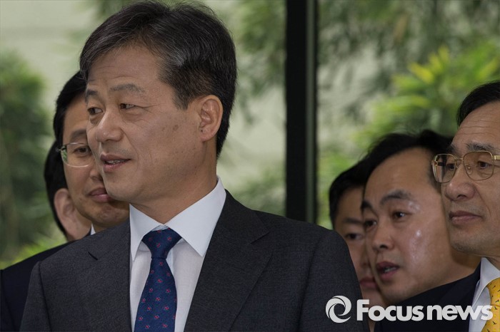 (과천=포커스뉴스) 20대 총선 후보자 등록을 앞둔 23일 오전 경기도 정부 과천 청사에서 이인복 중앙선거관리위원장이 공명선거 관련 대국민 담화문 발표에 앞서 관계자들과 이야기 하고 있다.